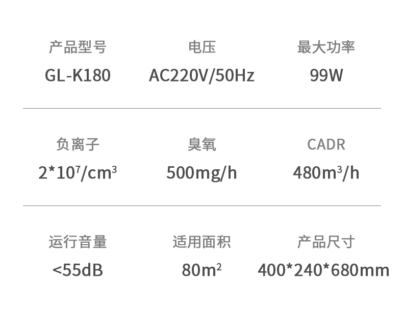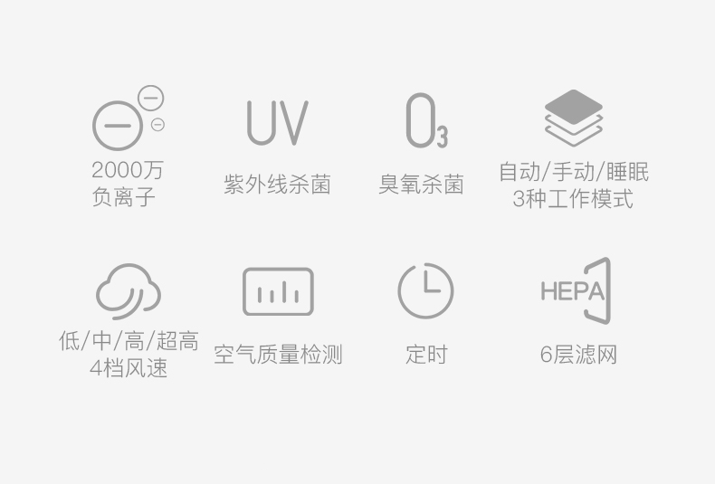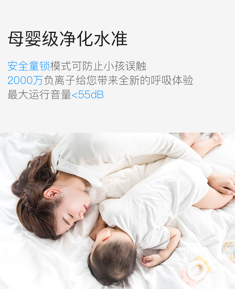 2000萬負離子:持續釋放負離子,能夠結合空氣中的微塵、花粉、霉菌、煙霧等有害物質,同時中和空氣中的有機氣體分子。