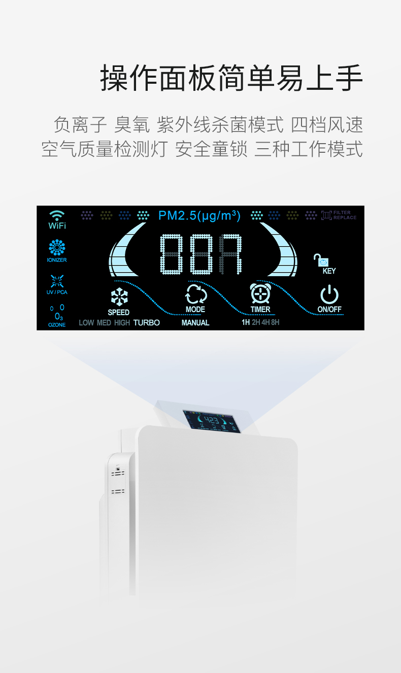 UV殺菌:UV紫外線主動出擊,殺菌消毒,循環凈化空氣。